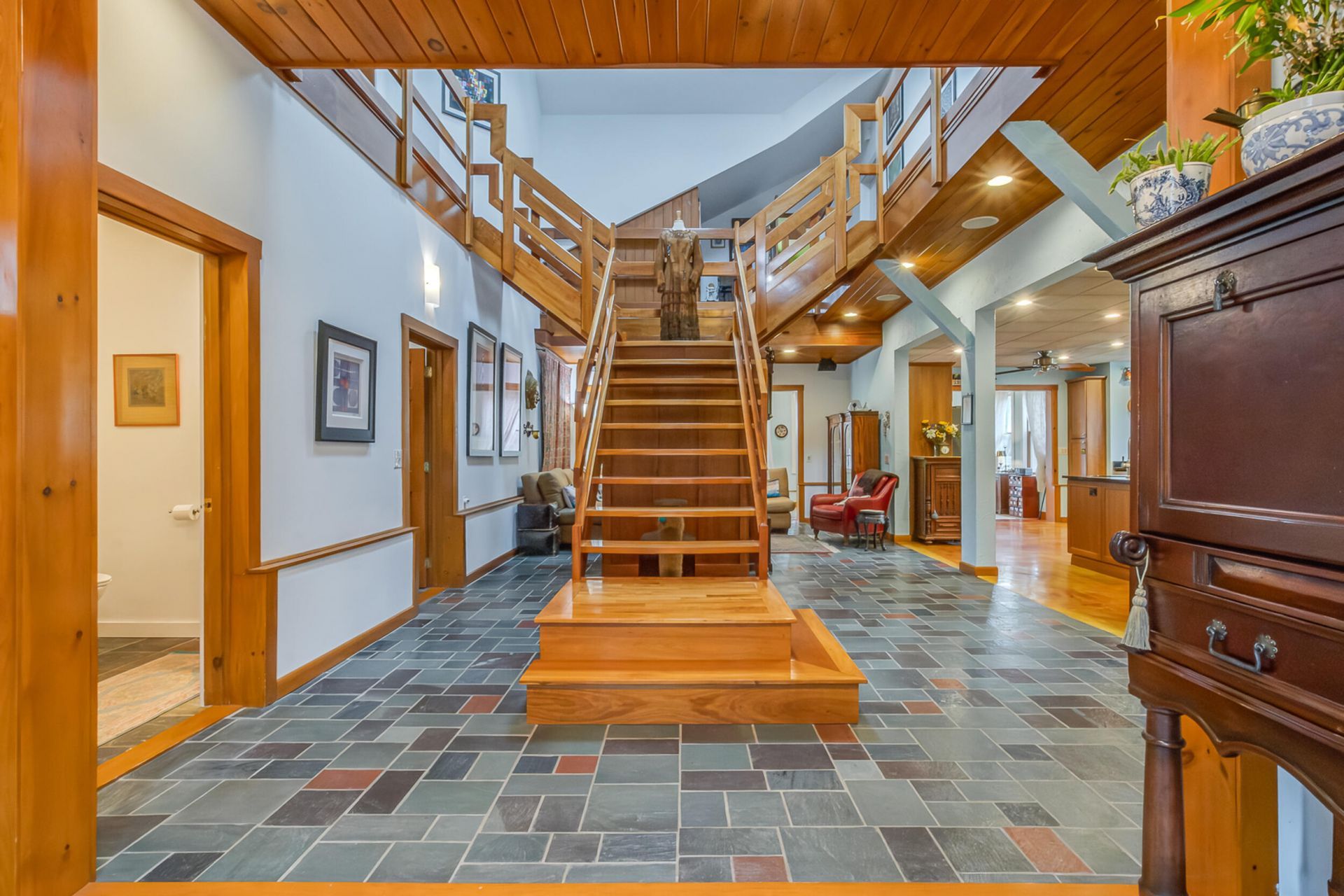 From the moment you step through the front doors, you're welcomed by a striking woodwork staircase that immediately sets the tone-warm, inviting, and thoughtfully designed to make a lasting first impression.Set in a private, beautifully landscaped setting just minutes from everyday conveniences, this home offers a rare balance of space, flexibility, and comfort. The layout is ideal for the way people live today, featuring a private in-law or teen suite that provides the perfect blend of independence and connection--whether for extended family, guests, or a dedicated work-from-home retreat.The main level offers the ease of a first-floor bedroom and � bath, creating a seamless option for single-level living, while radiant heated floors bring a level of everyday comfort that's especially appreciated during Maine's colder seasons. Upstairs, the en suite bedroom becomes a true retreat of its own--complete with access to a private balcony where you can unwind and take in the setting sun, a quiet moment at the end of the day that never gets old.Step outside, and the lifestyle continues. The backyard is its own private retreat--thoughtfully designed for both relaxation and entertaining--with a spacious patio for gatherings, a dedicated fire pit area for evenings under the stars, and an outdoor shower that adds a touch of everyday luxury after a day spent enjoying the outdoors.An oversized garage with an EV charger adds both practicality and forward-thinking convenience, while the surrounding grounds provide a sense of privacy without sacrificing proximity to local amenities.This is a home designed not just for how you live, but also for how you want to feel living there, offering flexibility, comfort, and spaces that truly adapt to your lifestyle.